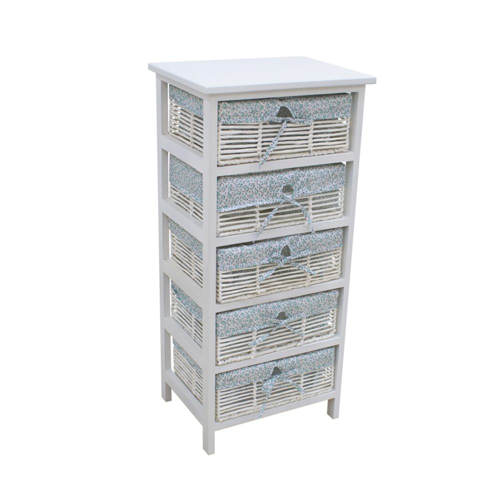 Armario Decor 84X39 5 Gaveta Madeira Branca Tecido Flor Verde 13-370/22 - Armario Decor 84X39 5 Gaveta Madeira Branca Tecido Flor Verde 1337022