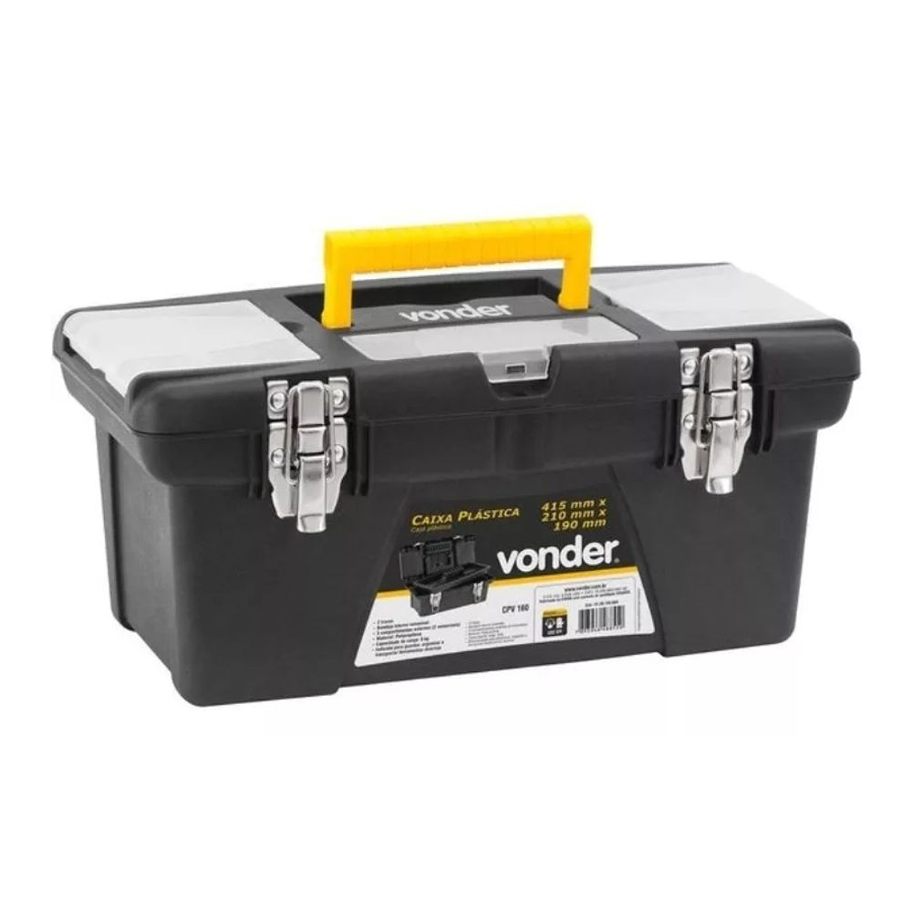 Indicada para organizar, armazenar e transportar ferramentas, peças e acessórios em geral. Possui duas travas, três compartimentos externos (dois removíveis) e bandeja para ferramentas removível.