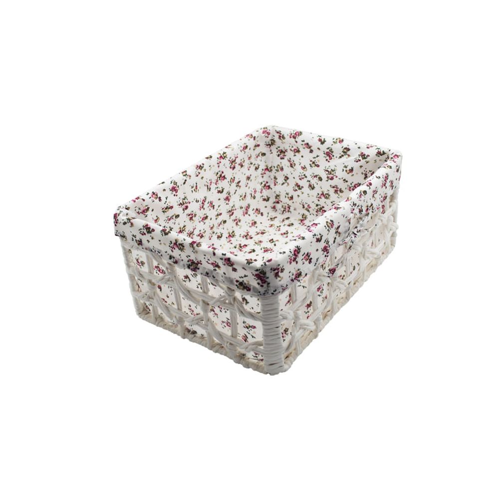 Cesto Decor 40x28 Br C/tecido Branco Floral 13c-045/19 M