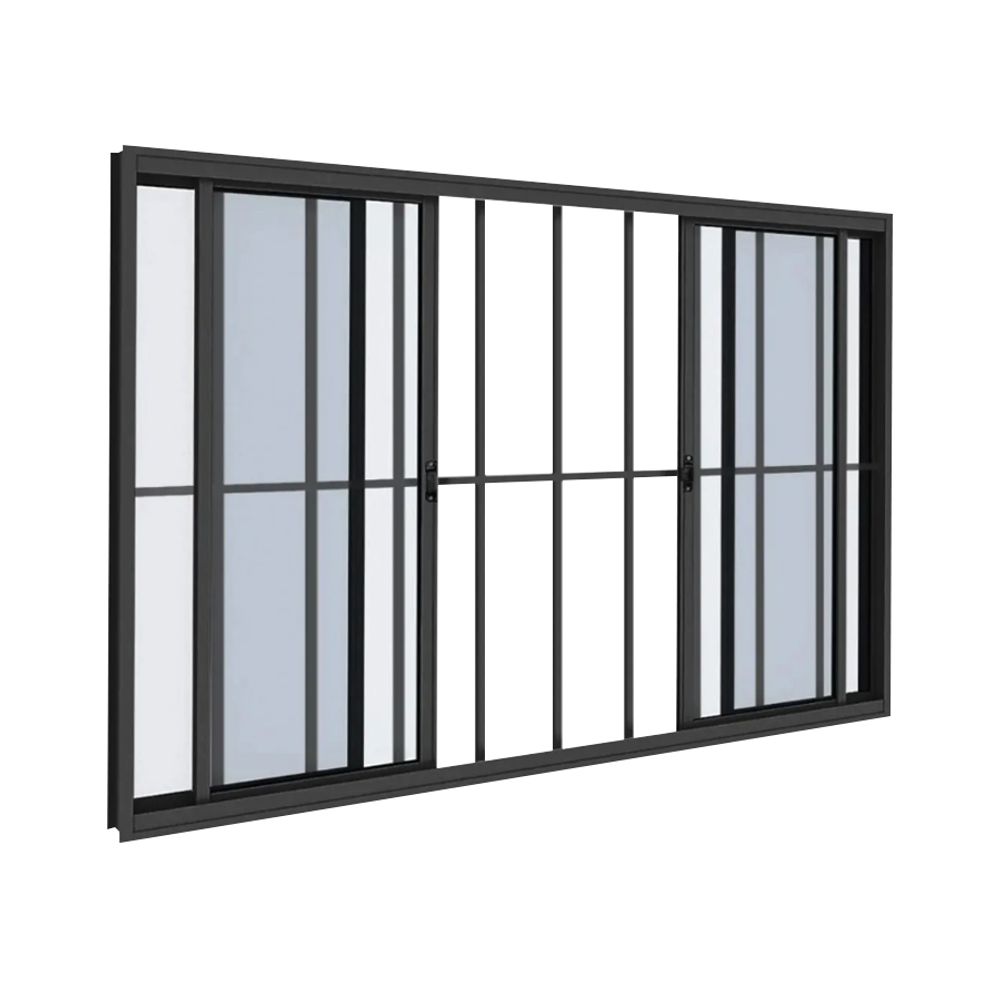 Vitrô MGM 100x200Cm Preto Sólida com Grade 4 Folhas 226374 - Alumínio